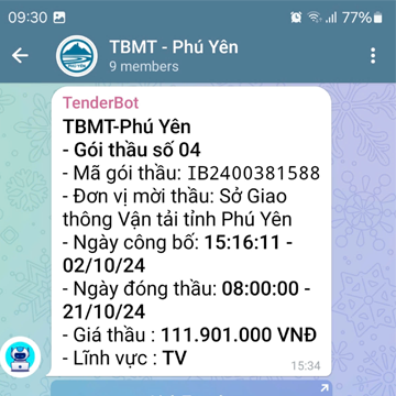 Tự động thu thập và cung cấp thông tin Thông báo mời thầu, Kế hoạch lựa chọn nhà thầu từ nguồn Hệ thống mạng đấu thầu quốc gia kịp thời cho các nhà thầu qua các hình thức: Group nhóm Telegram, Email,...